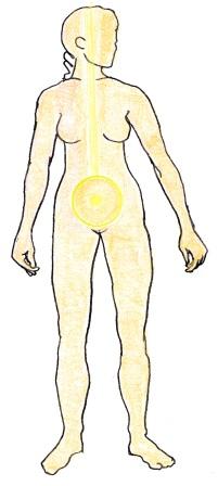 Daarna hebben we op ons mentale scherm een beeld van de gevoelsziel laten verschijnen: een prachtige, transparante bol ter hoogte van onze buik met een zacht lichtende kern, zie de figuur. Dit is geen chakra of tan tiëncentrum maar is een diepergaand gebied in ons energiesysteem. Deze gevoelsziel hebben we gezuiverd van oude energieën zodat de donkere plekken erin lichter werden.