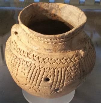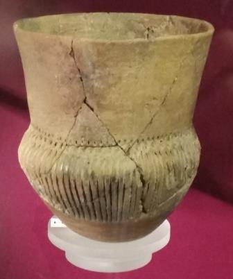 De zijkanten waren gegraveerd met een afwisselend patroon. Helderziend kreeg ik beelden van de pottenbakker die heel geïnspireerd bezig is met het maken van de pot. Het lijkt of er voortdurend gedachten aan de goden door zijn hoofd spelen: ‘moge de goden deze pot zegenen zodat alleen de heerlijkste en juiste dingen hiermee gebeuren. Laten zijn gebruikers hier veel vreugde aan beleven!’ Bij de versieringen heeft de pottenbakker ook gedachtes voor een lang leven van de gebruikers, een vreugdevol leven, een leven in vriendschap met de buren, goede oogsten, zegeningen en een overvloed aan voedsel. De pottenbakker had van zijn leermeester  geleerd hoe hij de trechterbekers moest maken en met welke intenties gewerkt kon worden bij het maken van de versieringen. De pottenbakkers gaven hun kennis en kunde iedere keer aan volgende generaties door.