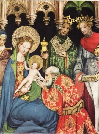 Figuur: Voorstelling van de drie wijzen uit het Oosten (Konrad van Soest, ca. 1400, schilderij in Evangelische kerk van Bad Wildungen bij Kassel)