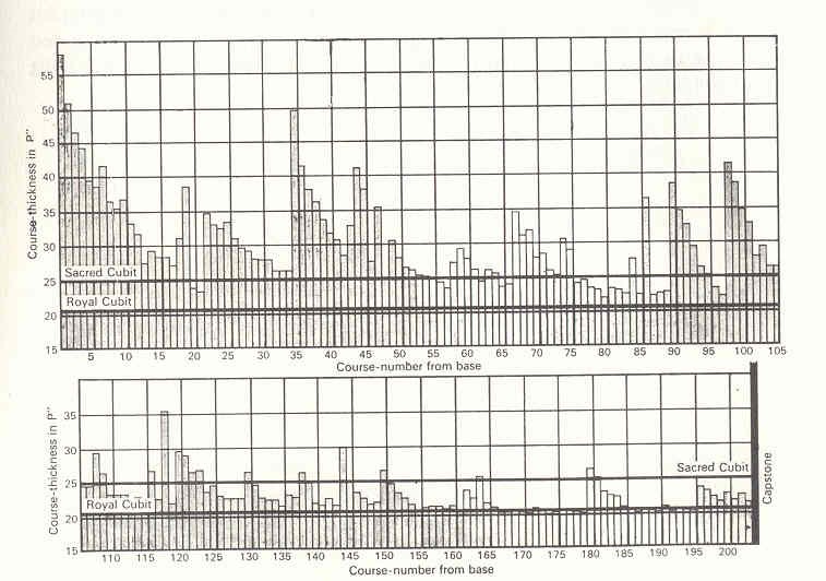 Figuur 4.3: Steenlagen van de piramide en hun dikte in piramide inch