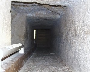 Figuur 9.4: Ondergrondse kamer met links de put waar nu een hek omheen staat (Bron: https://seniorplaza.nl/wereldwondergizeh/ )
