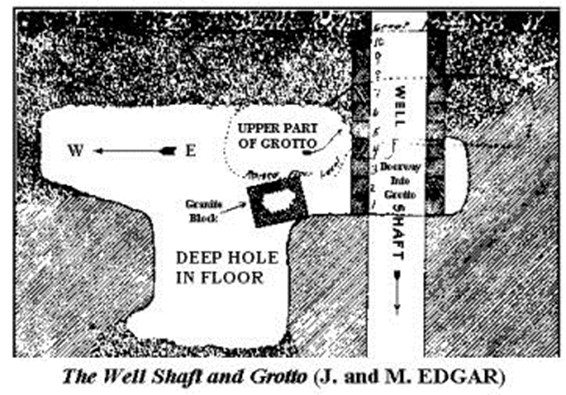 Figuur 4: De grotto en de bronschacht en (volgens piramide onderzoekers John en Morton Edgar)
