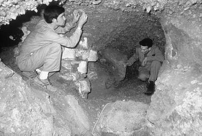 Het is een behoorlijk eind klimmen en waar de gang recht omhoog begint te gaan (zie figuur 3), komt hij aan bij een stenen deksel op de schacht die zijn voortgang belemmert.