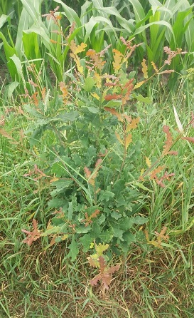 Figuur 2: Sint Janslot (rood en geelgroen) in een klein eikenboompje