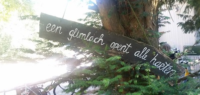 Figuur 4: Zomerzon tussen de takken bij een boom met een welkomstgroet
