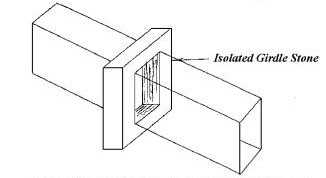 Figuur 14.3: Schema van een ‘girdle stone’ in de dalende gang (Bron: Guardian’s Egypt)