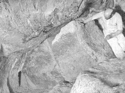 Figuur 14.5: Twee van de drie granieten pluggen aan het benedeneind van de dalende gang. (Bron: Bibliotecapleyades)