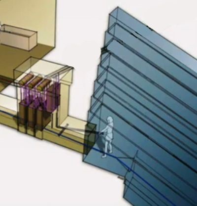 Het betreden van deze ruimte kan, ze ligt voor je maar toch is ze niet zonder meer te betreden. Een scherm van vernietiging hangt voor je zodat de kamer niet zomaar te betreden is. De uitdaging van het scherm is aan jou.”