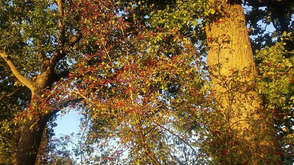 In het bos zijn er nog steeds prachtige herfstkleuren, maar de bomen worden al wat kaler (zie foto).