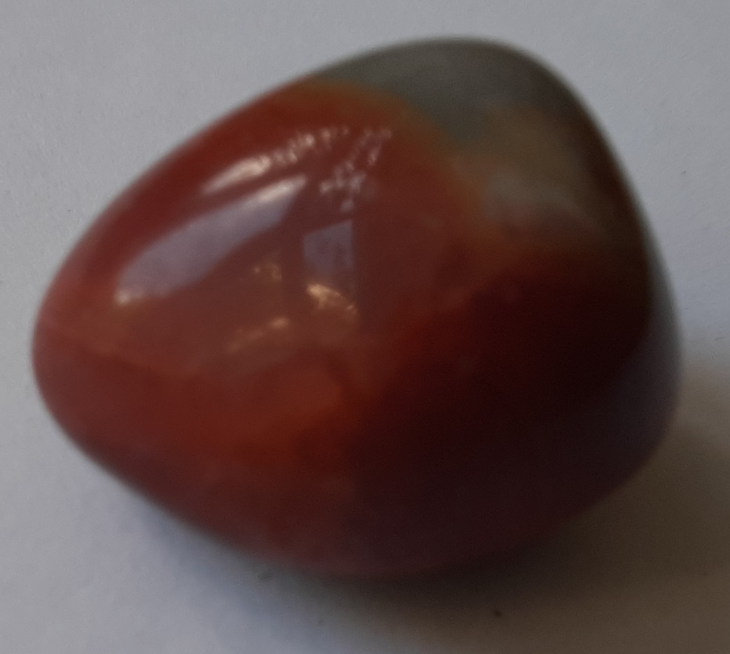 Het was heel leuk om ook nog andere stenen te voelen zoals oranjekleurige jaspis (zie figuur 7). Dat is een soort kwarts dat verschillende kleuren kan hebben zoals oranje, roodbruin en zelfs geel en groen. Het woord jaspis betekent oorspronkelijk ‘gespikkelde of gevlekte steen’. Ze worden soms geslepen en in sieraden gebruikt. De jaspis van de figuur heeft een uitstralingsveld van circa 10 centimeter, dus een stuk kleiner dan bergkristal of rozenkwarts.