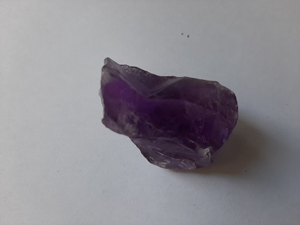 De paarse amethist is een bekend kristal dat ook veel in sieraden wordt toegepast. Dan is het geslepen. Wij hebben geoefend met het stuk ruwe amethist van figuur 9. Het is een kwartskristal waarin sporen van titaan en ijzer zitten. Het ijzer zorgt voor de violette kleur te zorgen