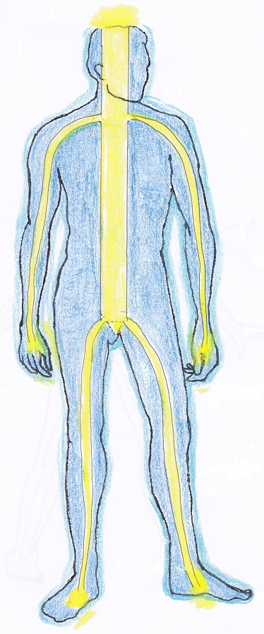 Soms kun je last hebben van ongemak in je lichaam. Dat kan pijn, irritatie of iets anders zijn. Ook als je niet weet wat precies de oorzaak ervan is, kan het prettig zijn om een meditatie te doen die je ongemak verlicht. De meditatie die hier staat is zo’n meditatie. Je activeert daarbij je kundalini-energie in je etherische lichaam zodat deze een energiekolom vormt van stuit tot kruin (zie figuur 1).