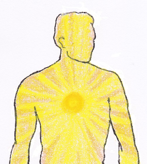 Licht dat van diep uit je hartchakra komt. Het punt van innerlijk licht dat daar zit, wordt gevoed door een lichtkanaal vanuit het stralende zonnetje van het Hoger Zelf, bovenin de aura.