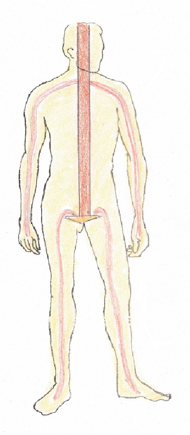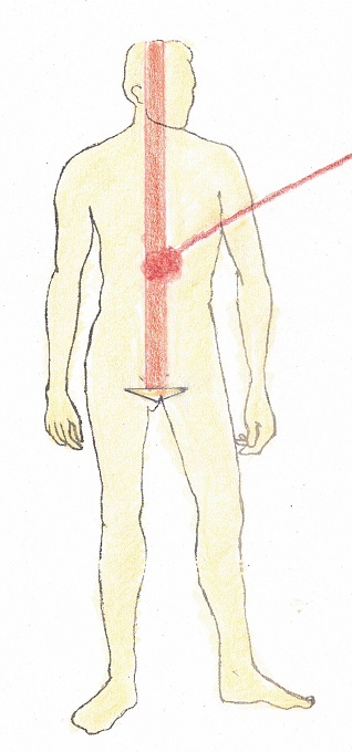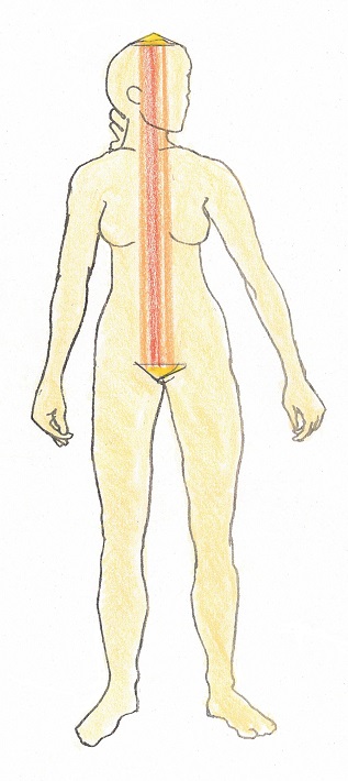 Met de meditatie van Y1 ‘Healing etherische energielichaam met een kundalinikolom’ is het mogelijk de kundalini-energie in het etherische energielichaam te activeren zodat een brede kolom van energie van de stuit naar de kruin ontstaat. Een kolom van zeker 15 centimeter doorsnede. Door de kundalini in het etherische energielichaam verder te activeren, kan in de eerste kolom een tweede , wat smallere kolom ontstaan. Een kolom met een breedte van circa 8 – 9 centimeter. Figuur 1 geeft een indruk van de kolom van krachtkundalini. Vaag is nog de kolom van alertheidskundalini te zien. Die verdwijnt uit zicht bij het activeren van de krachtkundalini.