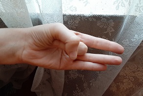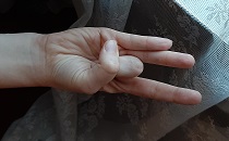 De vingerstand die bij de oormudra hoort is als volgt (zie figuur 3).