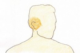 Zet je naam op die plek terwijl je je hartenergie ernaar toe blijft stralen. Op die manier kan storende energie van anderen gemakkelijker wegstromen. Misschien zit er een energiekoord vast aan die plek, een energielijn naar een ander toe. In figuur 6 is zo’n energiekoord in oranje getekend. Dit koord dringt diep door in het oor en kan vastzitten aan de gehoorgang of nog dieper. Daar kan het koord vast blijven zitten aan een emotioneel geladen herinnering van een actie van de persoon van wie het energiekoord afkomstig is. Vaak is de emotionele lading er een van schrik, angst of ongemakkelijk voelen.