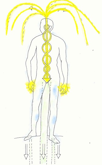 Stel je voor dat je de aardse en geestelijke kundalinistroom met elkaar in balans brengt. Dat is de optimale toestand voor geestelijke ontwikkeling. Als je dat doet kan het rustig in je voelen. Dan kan een verticale kolom van aarde en geestelijke kundalini in je ontstaan. Probeer dat te voelen en geniet van de balans tussen beide energieën