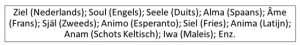Figuur 1.2: Het woord ziel in allerlei talen