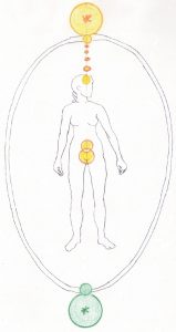 De meest voelbare zielekern is de gevoelsziel ter hoogte van onze buik (zie figuur 2). Om enig idee te geven van de omvang van dit bolvormige gebied: dit is ongeveer 18-20 cm in doorsnede.