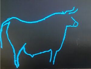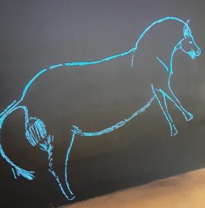 Ook werd in de Coa-vallei een museum gebouwd over de rotskunst: Museu das gravuras de Foz do Côa oftewel het museum van de tekeningen van de monding van de Coa-rivier. Bij ons bezoek aan de Coa-vallei bezochten we dit prachtige museum. Ze bevatten niet de oorspronkelijke rotstekeningen maar wel replica’s, ingekleurde afbeeldingen van de gevonden diertekeningen en achtergrondinformatie. Twee voorbeelden van ingekleurde afbeeldingen van een geit en een oeros staan hieronder (figuur 2 en 3). Evenals een niet ingekleurde afbeelding van een hert (figuur 4).