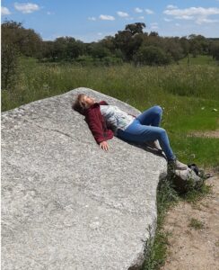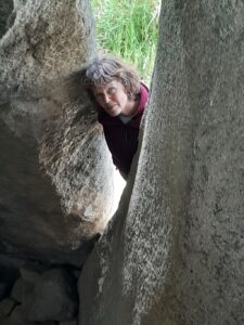 Ao investigarmos mais, percebemos que todas as pedras do dólmen têm uma sensação energética. Sentamo-nos bem atrás do dólmen (veja figura 2), onde ainda há um resto do monte de cobertura. Ali nos concentramos em fazer uma leitura áurica (aura-reading) para saber mais sobre este monumento especial. Nosso foco é no uso original para o qual o dólmen foi concebido.