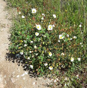 Em nossa viagem a Portugal, estava no programa uma visita ao maior dólmen do país. Ele é chamado Anta Grande do Zambujeiro (o que significa “Grande Dólmen da Oliveira Brava”) e fica no centro de Portugal, perto de Évora. No site do Hunebedcentrum de Borger há alguns relatos sobre visitas a este dólmen com belas fotos (Maior dólmen de Portugal, Zambujeiro e Évora em Portugal, centro de um paraíso megalítico). Nossa primeira tentativa de visitar o dólmen literalmente caiu por terra devido a enormes chuvas torrenciais quando chegamos perto dele. No dia seguinte, felizmente, o tempo estava ensolarado. Por um caminho através de um campo com cistus de aroma delicioso (veja figura 1), chegamos a este dólmen.