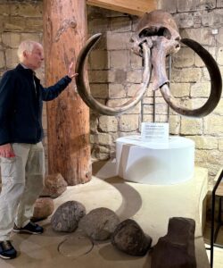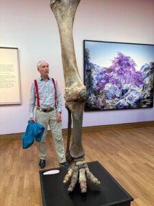 Af en toe worden nog mammoetbotten gevonden, zelfs in Nederland. Op de expositie ‘Wij Zijn Natuur’ in het Singermuseum te Laren (augustus 2025) stond er een bot van een mammoetbeen tentoongesteld. Er naast staande (figuur 8) zag ik hoe geweldig groot zo’n dier moet zijn geweest.